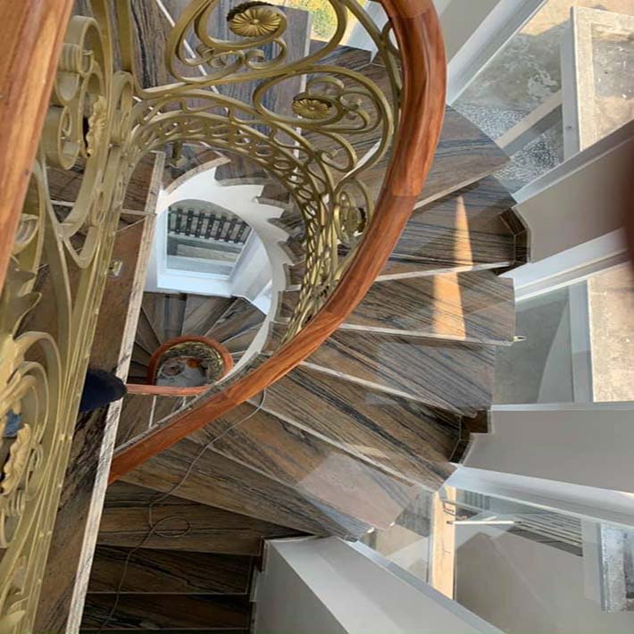 Đá hoa cương granite Không giống như bất kỳ đá loại vật liệu trang trí nào hiện đại, cần có sự trang trí, cắt ghép tinh xảo của rồi có thể thêm màu sắc, hình dáng để giúp cho không gian tổng thể ngôi nhà cũng như phần granite đi lên các tầng được hoàn chỉnh hơn.