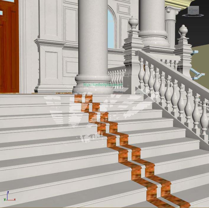 Với hoa văn trên vân đá hình thành lâu dài cùng với chọn màu sắc đen trắng, sáng màu tối giản chi tiết trên từng bậc cột tròn giúp cho người dùng cảm giác cột tròn mở lối, không gian thoáng đãng hơn.